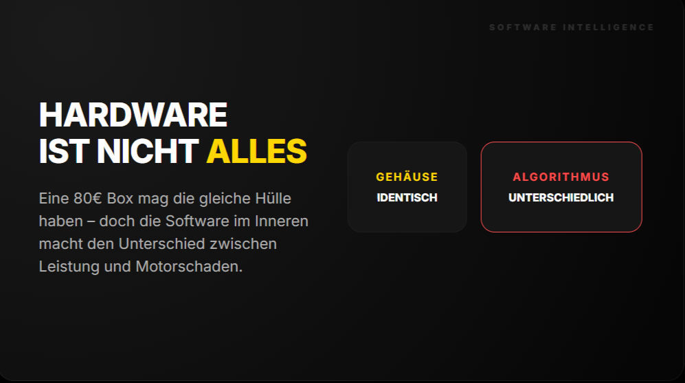 Bei Tuning-Modulen ist es genau das Gleiche. Die Qualität liegt nicht in der Box selbst. Sondern in der Software drauf.