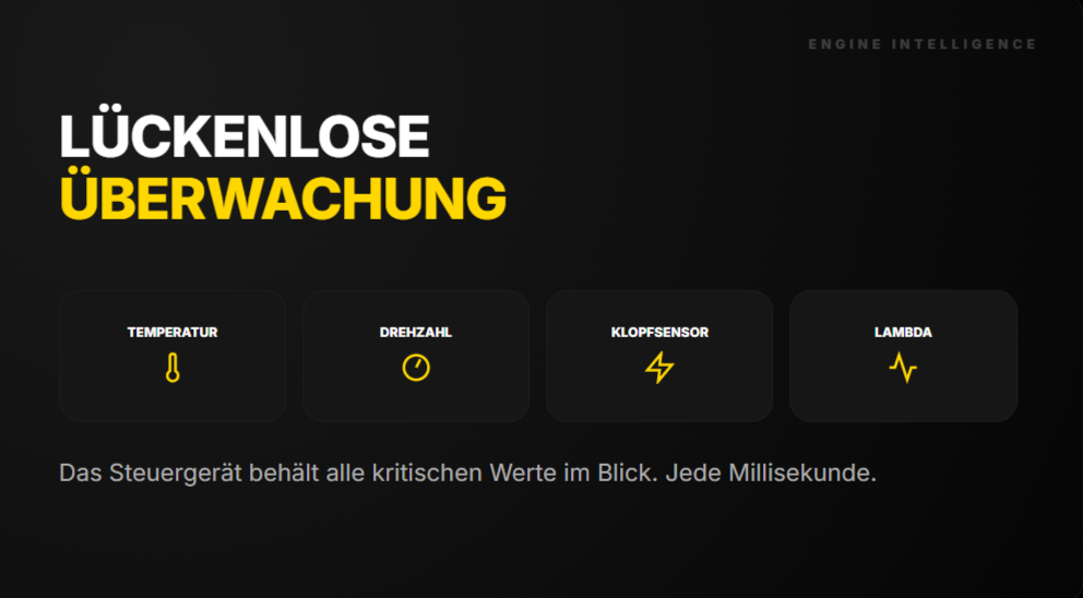 Wird irgendwas kritisch? Das Steuergerät greift ein. Regelt runter. Schützt den Motor. Die Sicherheitssysteme bleiben aktiv.