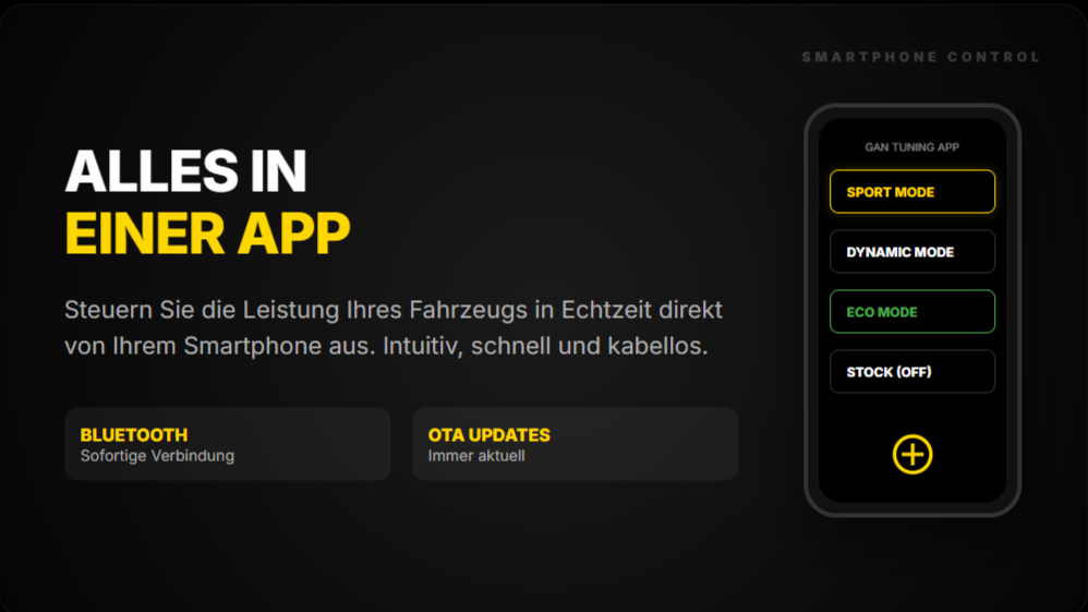 Das Ganze passiert ständig, während Sie fahren. Intelligente Module – wie die von GAN – passen sich dabei an die Fahrsituation an. Sie treten aufs Gas? Mehr Leistung. Sie cruisen entspannt? Normalbetrieb.