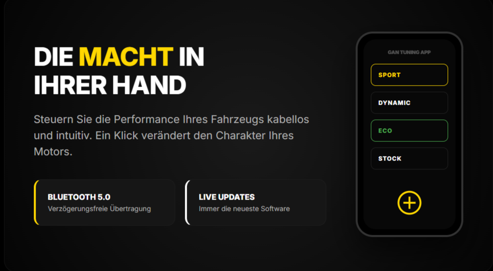 Auf der GAN-Website können Sie Ihr Auto eingeben und kriegen die exakten Werte für Ihr Modell. Mit Vorher-Nachher-Vergleich. PS, Drehmoment, geschätzter Verbrauch.
